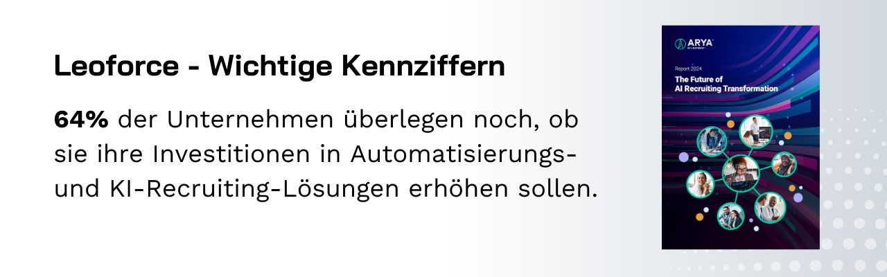- 30 % der Unternehmen haben in den letzten 2 Jahren ihre Investitionen in Automatisierungs- und KI-Recruiting-Lösungen erhöht.