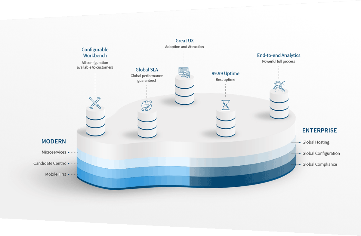 Découvrez un logiciel de recrutement moderne basé sur une architecture cloud hautement évolutive et sécurisée, complétée d’une prestation de services rapide et fiable, avec une disponibilité de 99,9 %, avec les avantages suivants :