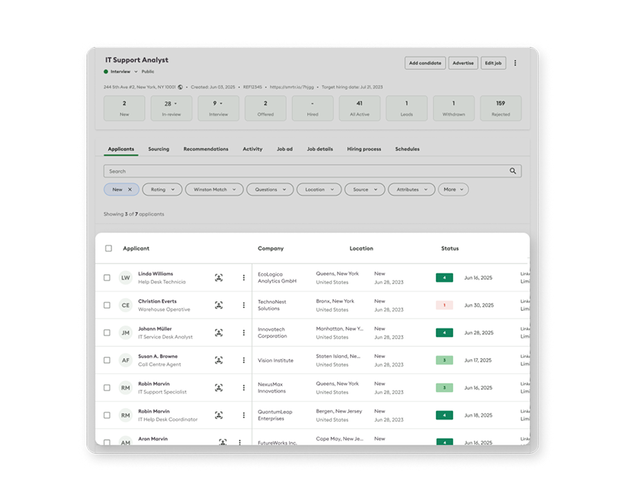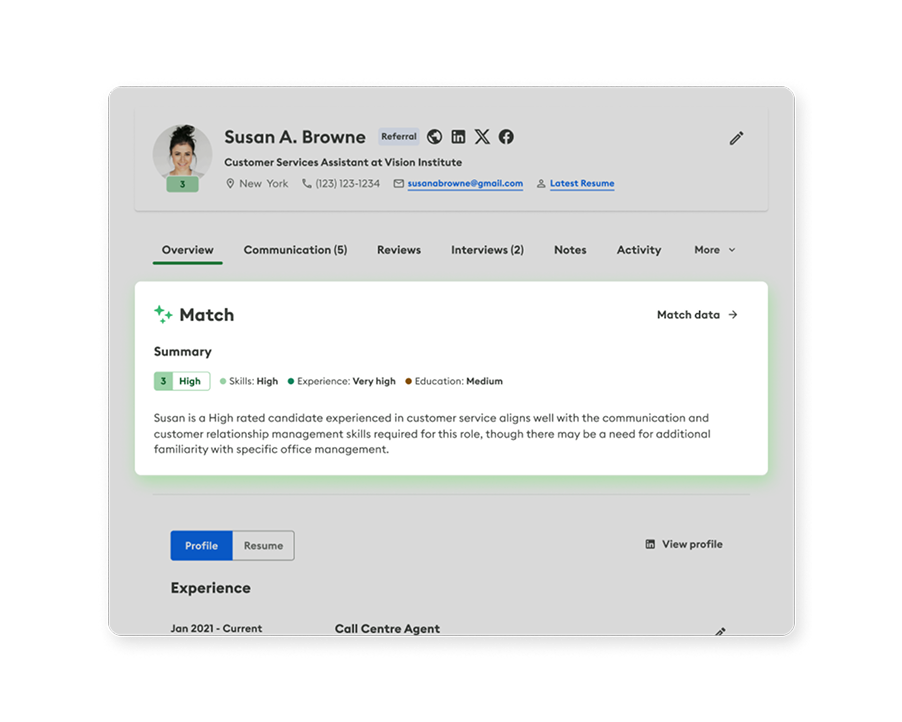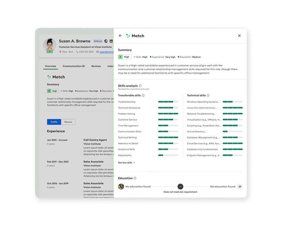 Winston Match attribue une note à chaque candidat et fournit des explications simples pour comprendre exactement pourquoi un candidat correspond au profil recherché (ou non).