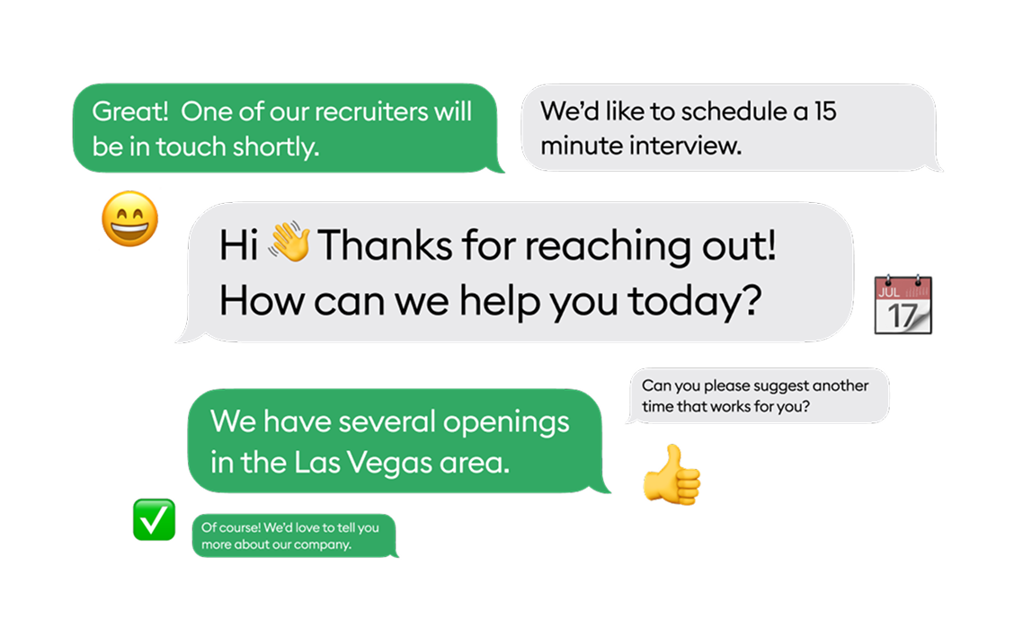 Le recrutement moderne va vite, et pour attirer les meilleurs talents, l’expérience candidat doit aller encore plus vite. Le recrutement par SMS vous permet de contacter les candidats en temps réel, avec des messages personnalisés et instantanés.