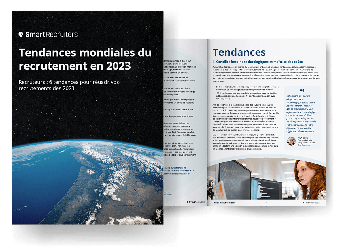 Retrouvez notre ebook ""Stratégie d'acquisition de talents : Recruteurs : 6 tendances pour réussir vos recrutements dès 2023"" et découvrez comment les leaders du recrutement les plus avertis repensent leurs stratégies et leurs tactiques afin de satisfaire leurs besoins de recrutement présents et futurs.