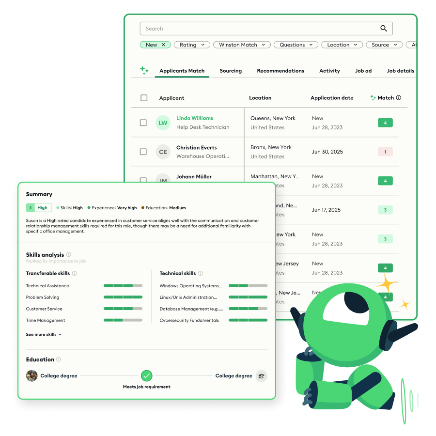 Accélérez vos recrutements en remplaçant l’examen traditionnel des CV par Winston Screen et la présélection pilotée par l’IA.